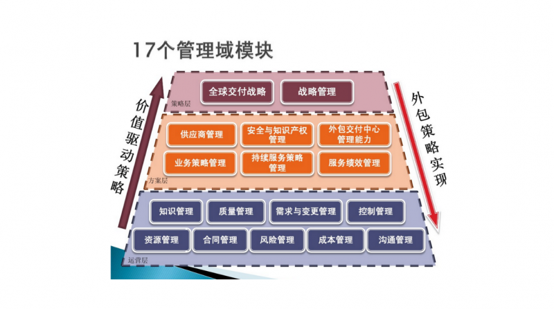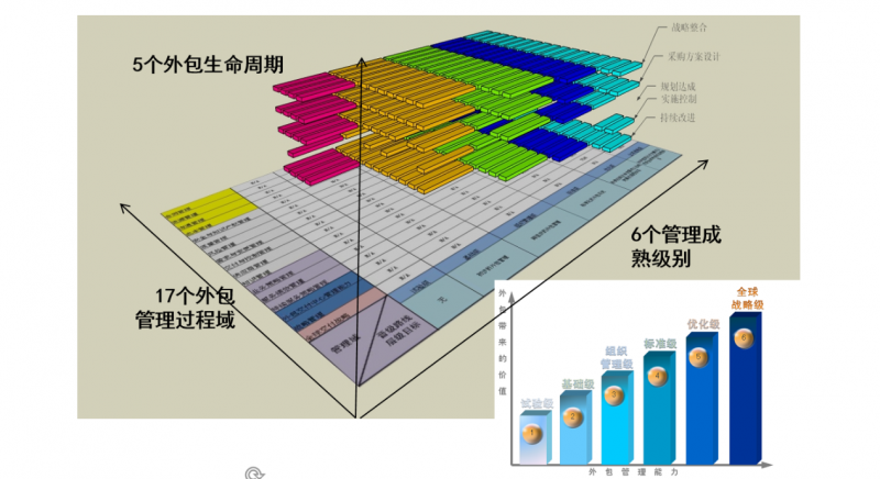 为帮助行业客户有效应对这些挑战,文思海辉先进的OMM方法论在17个管理过程域提供62个管理模块,并融汇上百套管理模板和62个最佳实践集,通过6个成熟度级别规划,帮助行业客户客观评价外包管理成熟度、完善外包管理体系,为客户提供供应商管理服务,从而助力客户构建开放共赢的信息服务生态系统。