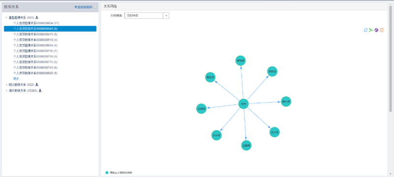 以联保、互保为主要形式的担保圈贷款风险一致是令市场无奈,令监管层头疼的顽疾,也是商业银行信贷管理中的薄弱一环。准确识别担保圈是进行风险化解处置的前提和基础。我国监管部门自2004年起逐步建立、完善了客户风险监测预警系统,其中银行机构授信主要包括授信、贷款、担保、关联关系等信息。由于系统中得到的原始担保数据是不直观、不连续的,因此,采用有向遍历算法,对系统中的全部担保关系进行计算和识别,绘制担保网络图谱。通过有向遍历的算法技术解决担保圈概貌不清的问题,基于绘制的担保圈图谱,全面识别各层次担保圈的规模结构和风险特征,为判断化解对策提供全局视角和数据技术。