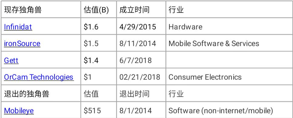 在美国,有51%的独角兽企业由海外移民创建,其中有7家为以色列移民(占比16%)。此外目前以色列目前孵化出了4家独角兽企业,并且有一家成功上市被收购退出。