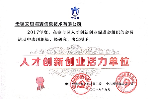 9月27日,无锡市高新区(新吴区) 科技创新和人才大会暨苏南国家自主创新示范区建设发展大会顺利召开。由无锡市高新区(新吴区)科信局主办,市政府副市长、高新区党工委书记、新吴区委书记王进健出席并讲话,高新区党工委副书记、管委会主任、新吴区委副书记、区长封晓春主持了会议。此次大会是近年来无锡高新区(新吴区)最高规格的科技和人才大会。会上,副区长胡逸传对高新区突出贡献单位亲自给予了表彰,无锡文思海辉凭借创新实力与卓越贡献荣获“人才创新创业活力单位”称号。