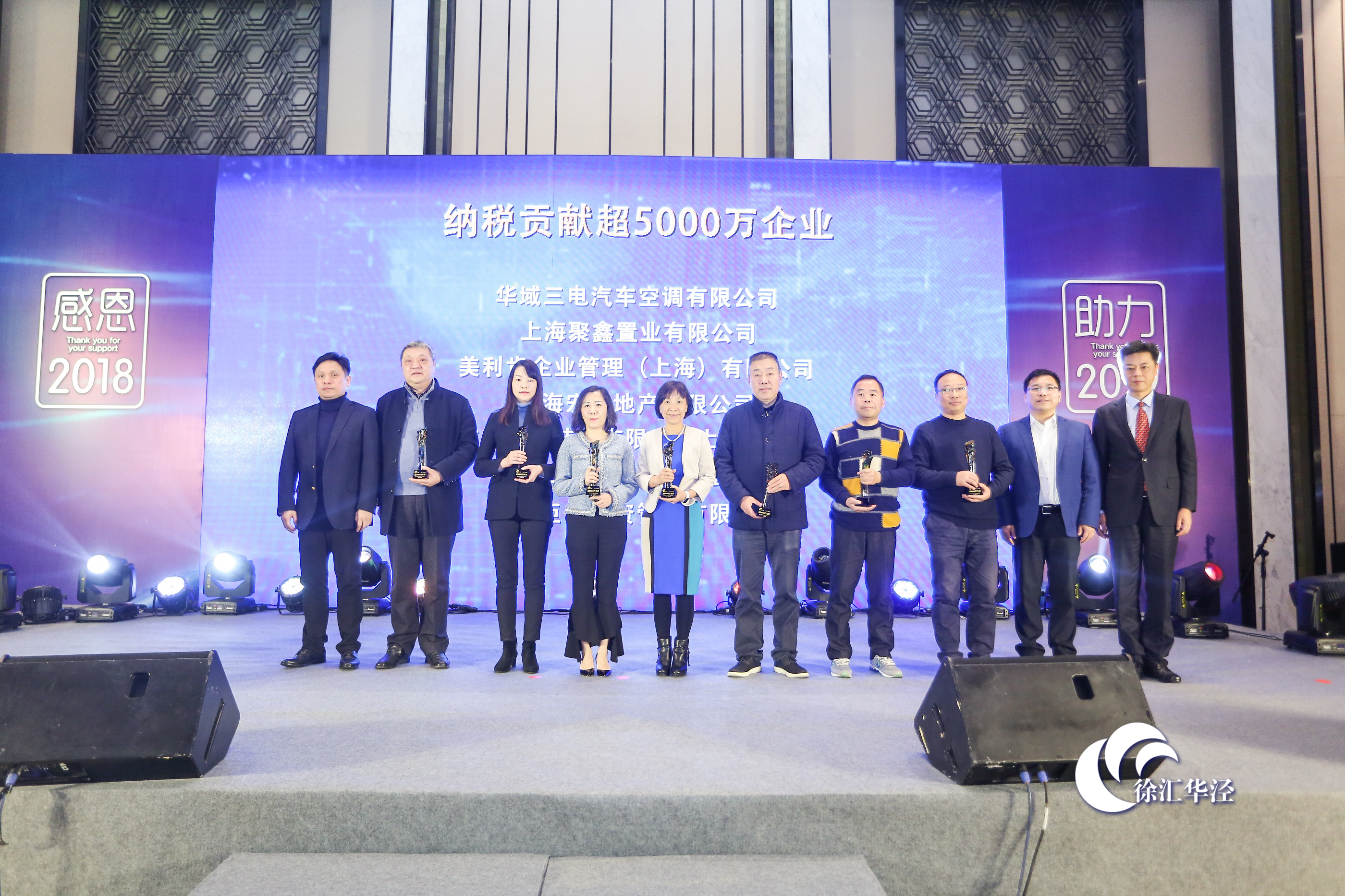 1月22日,上海市徐汇区华泾镇2018年度“感恩 助力”企业颁奖及答谢会圆满落幕。此次大会华泾镇党委、镇政府举办徐汇区政协主席胡敏,区发改委主任程伟,区商务委主任华欣,华泾镇党委书记阙永德,镇党委副书记、镇长黄科,镇人大主席王长高,区相关委办局领导,以及镇域各职能部门和超过100家企业代表出席本次活动。华泾镇为表彰税收超500万企业,感谢过去一年为华泾经济发展所做出的突出贡献,特别举行了优质企业颁奖。文思海辉集团两家子公司:文思海辉技术有限公司上海分公司与无锡文思海辉信息技术有限公司上海分公司分别以税收超5000万、税收超1000万两项贡献荣获奖杯