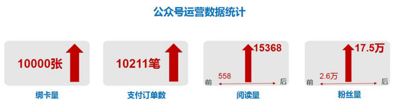 在某农商银行,为了弥补行内移动金融服务的缺口,文思海辉·金融利用移动互联网渠道实施线上获客,将其公众号打造成移动端的营销宣传平台和客户服务阵地。经过两个月的时间,该行微信公众号运营情况发生了极大的改变,绑卡量、支付订单数、阅读量都有明显增长,尤其粉丝量增幅约7倍。