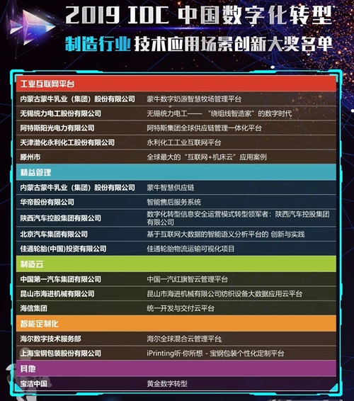 10月18日,由IDC中国主办的“2019 IDC中国数字化转型年度盛典暨第四届数字化转型领军用户颁奖典礼”在京落幕。无锡统力电工股份有限公司(以下简称“统力电工”)的“‘绕组线智造家’的数字时代”项目荣获“2019 IDC中国数字化转型制造行业技术应用场景创新大奖”。据悉,该项目由中国IT服务领军企业文思海辉提供技术支持,采用了其自主研发的OctoIoT智能工业物联网平台解决方案。