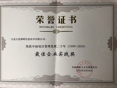 10月29日,由中国国际人才交流基金会主办、项目管理协会(PMI)协办的“中国项目管理发展二十年成果发布暨高峰论坛”在北京举行。2019年恰逢项目管理知识体系及其专业认证引入中国大陆地区二十周年,为全面展现项目管理知识体系在中国的发展历程,推动未来分行业分领域项目管理体系建设,大会主办方策划了中国项目管理发展二十年成果总结,经层层评审,授予包括文思海辉、阿里巴巴、华为、中兴通讯等在内的20家企业“项目管理最佳企业实践奖”,对获奖企业项目管理成果予以了肯定,并支持、鼓励企业对中国项目管理发展所作贡献。