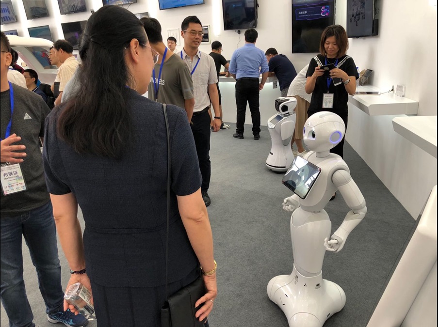 本次大会在上海西岸油罐艺术公园内设立了AI Park人工智能公园,共设计了“AI+金融、AI+智造、AI+教育、AI+交通、AI+健康、AI+零售、AI+服务”七大主题展览。文思海辉携AI+政务的政务服务机器人解决方案及人工智能大数据服务平台参展,并带来了政务服务机器人“小华”与金融智脑机器人“小文”,在展会现场备受青睐。
