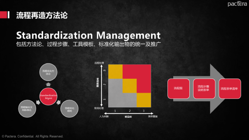 - 科学有效的流程优化再造和核查的方法论及实践;